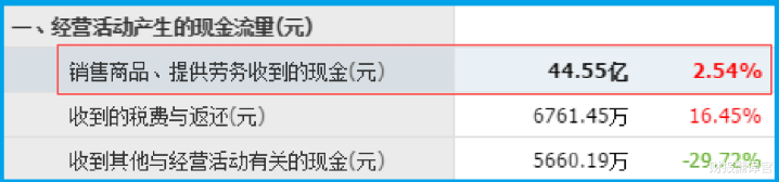 真正的破案线索,往往藏在最不起眼的角落。财官转向现金流量表,发现销售商品收到的现金总额为44.55亿元,同比增长了2.54%。